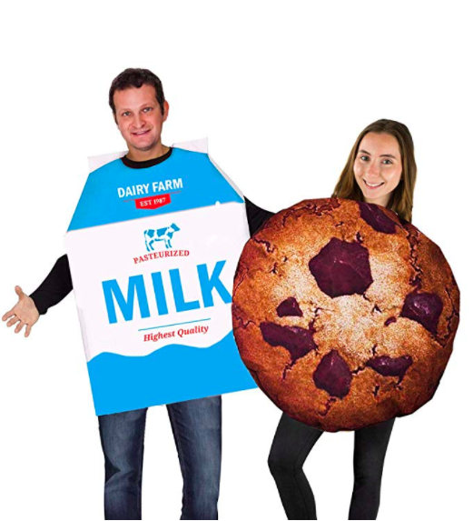 Like most of these, this couple’s costume is minimal effort, maximum greatness. The milk goes overhead like a shirt and the cookie goes on like a backwards backpack, so make sure you have something to wear underneath.