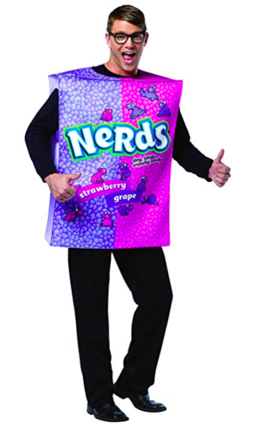 Amazon Review: “To be honest, I expected cheap junk, but was pleasantly surprised. This thing is a sort of foam/polyester that folds down easily and is very lightweight, but it looks good, holds its shape, and is pretty comfortable. It was a hit as a Halloween costume. One note, the backside is just solid purple/pink, with no text or graphics. If you wear this for Halloween, buy a bunch of Nerds candy to hand out, because everyone you see will ask.”