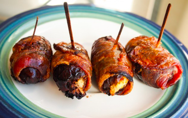 14. Bacon-Wrapped Dates with Goat Cheese and Rosemary
