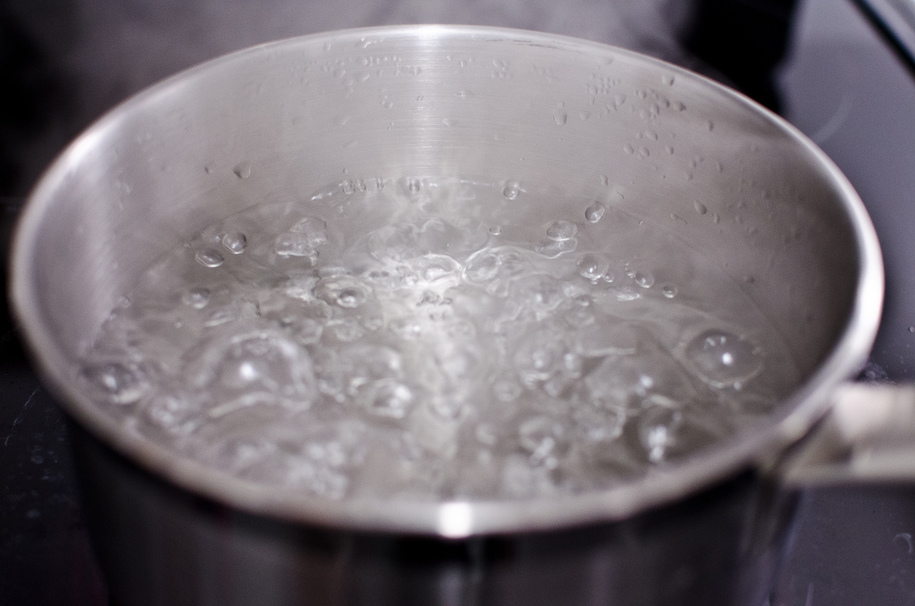 Water vapor (steam) is another highly effective means of heat transfer. Steaming vegetables in a pot with the lid on creates a mini steam room. Water molecules that have surpassed boiling point turn to steam and come in contact with the food. Then, they touch the food and condense back to liquid, releasing high heat in the process.