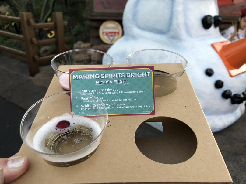 Each cart also has cocktails and desserts to match the theme. This Mimosa Tasting Flight, from the Making Spirits Bright cart, includes pomegranate, pear and white cranberry mimosas. There are also wines, beers and cocktails available throughout, with a strong bent towards what’s made in California.