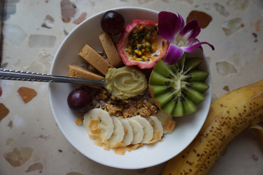 Once you’ve chosen your toppings, the last step is all about assembly. To make your bowl really Insta-worthy, you need to get artistic. For example, slice your banana uniformly and spread the pieces evenly around the edge of the bowl; cut your kiwi fruit into a flower; selecting a few contrasting colors and so on.