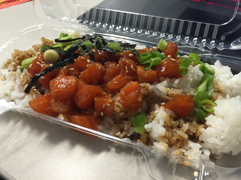 However, once I got to my poke I was dismayed that I didn’t remember it came with a lot of rice and green onions. It took a hell lot of willpower to not eat it all and break my one-color rule. But, I did it and only ate the salmon.