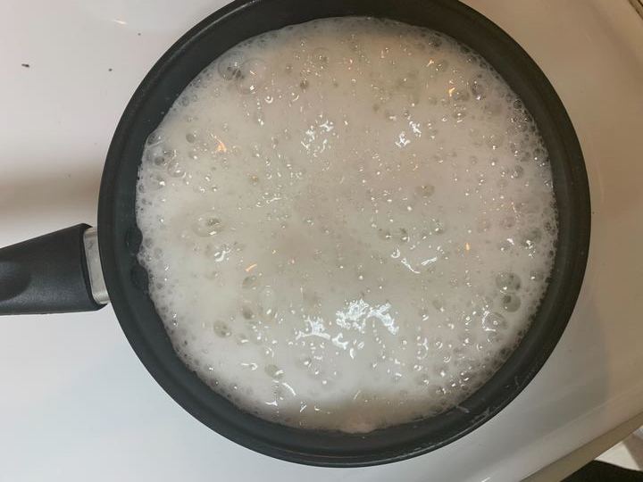 My quest of making marshmallows from scratch started at Fred Meyer, where I purchased powdered sugar and gelatin. The only other ingredients you need are white sugar, water, and a pinch of salt. First, I greased my pan with cooking spray and dusted it with powdered sugar. I realized later I didn’t put enough powdered sugar on my pan, so be generous with it if you try this yourself. Then, I bloomed the gelatin in water while I heated the sugar and water in a saucepan on medium heat. I was really proud of myself for not letting it boil over, because my apartment’s stovetop is a pain to clean. It only had to boil for a little bit after adding in the gelatin, and I was stirring it viciously the whole time it was bubbling happily.