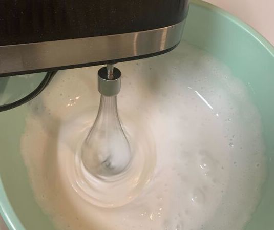 After the sugar and gelatin mixture had cooled for half an hour, I poured it into a bowl and plugged in my trusty hand mixer with its cute little whisk attachment. I added the salt and a fourth teaspoon of peppermint extract — but I probably should’ve added less, because that stuff is strong. Next came the magical part where I turned on my mixer and watched as my sugar goop transformed into creamy fluff.