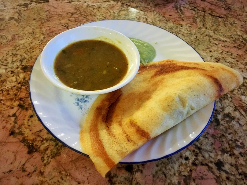 Dosa is one of the most crispy and flavorful South Indian delicacies. The crispy pancake is tangy and complements the spicy potatoes, onions, and sweet peppers that can often be found inside. It is often served with sambar (lentil-based stew) and chutney.