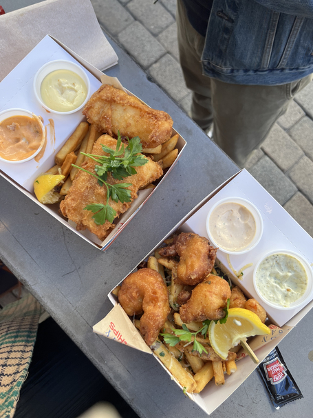 I got off the plane and immediately took an Uber straight to Gordon Ramsey Fish & Chips. I saw a few people try this place on TikTok, and the fish looked insanely tender and crispy. Upon arrival, you can tell this place is British-themed. The doors are modeled after London telephone booths, and Union Jacks are everywhere. What it lacked in seating (seriously Gordon, please add some more tables in there), it easily made up for in food. I ordered the fried shrimp, fried cod, and fries with truffle, parmesan cheese, chives and parsley (called Dirty #2 on the menu). If you skip anything, make it the fries. They were good, but not worth ordering again. But do not skip the fried cod. It was so tender and battered to perfection. The shrimp is also a sleeper hit. My only regret here is not trying a sticky toffee shake.