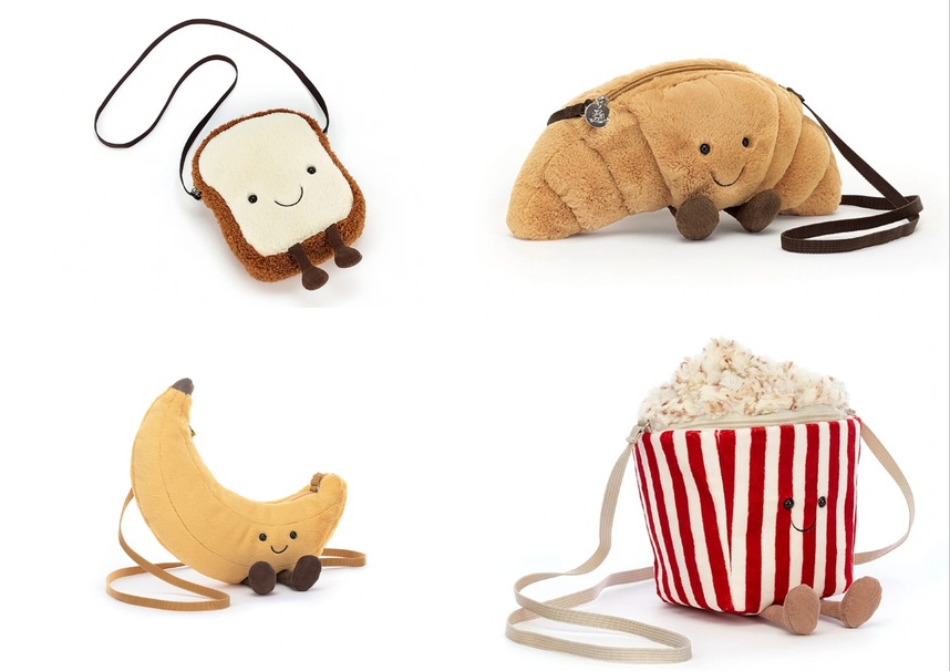 Jellycat offers an array of foodie purses, including Amuseable Toast, Croissant, Popcorn, Banana, and more bags.
