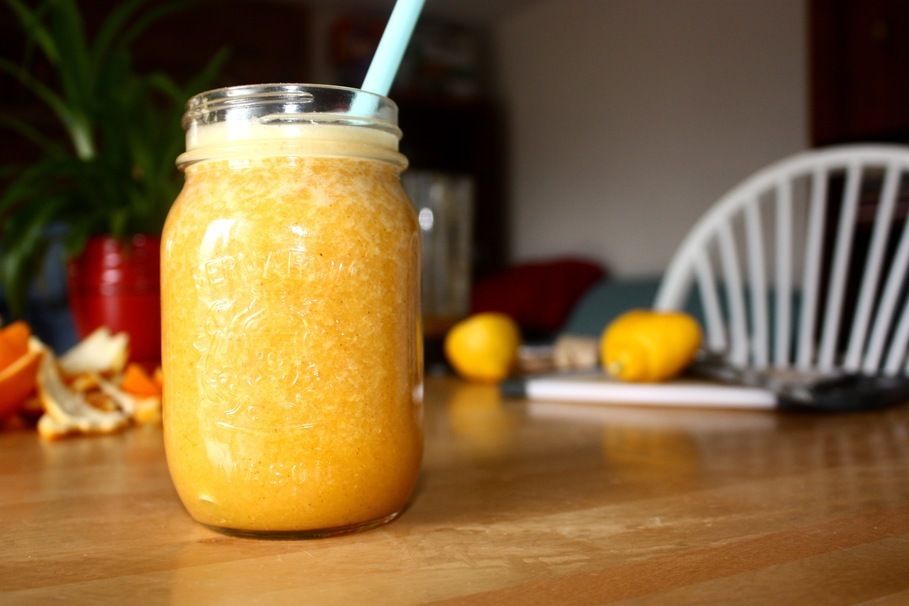 This smoothie is a healthier and more natural version of Emergen-C or Lucozade. Combining all the benefits of citrus (I’m looking at you, Vitamin C) with the spiciness of ginger and cayenne pepper, this frothy mixture is a good defense against sore throats and runny noses. Ginger is a known “power root” that helps with inflammation and digestion – plus, it tastes dank in a steaming glass of turmeric ginger tea.