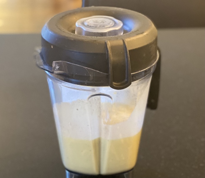 Blend the ingredients on medium speed until they are thoroughly combined.