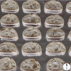 Place baguette slices on a baking sheet and brush lightly with oil. Bake for 14-18 minutes or until golden, rotating sheets halfway through baking time if baking multiple sheets at once.