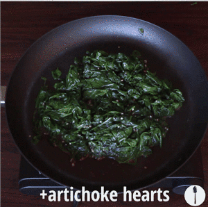Add the artichoke hearts and cook until warmed through. Remove from the heat.