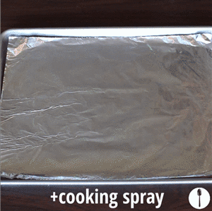 Line a baking sheet with aluminum foil, spray with cooking oil, and arrange peppers on sheet.