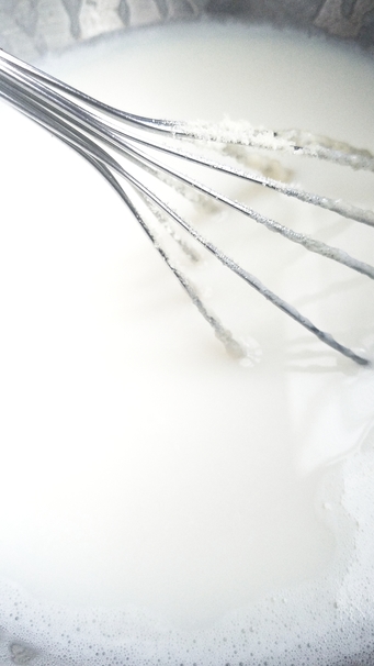 Slowly heat up milk over medium high, stirring frequently so a film does not form. Once steaming, whisk in gelatin packets.