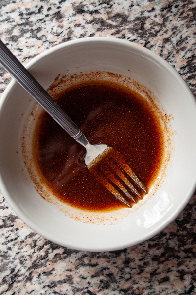 In a small bowl, mix 6 tablespoons of olive oil, 2 teaspoons of lemon pepper, 2 teaspoons of garlic powder, 2 teaspoons of chili powder, 2 teaspoons of smoked paprika, 1 teaspoon of black pepper, and salt to taste. Set the mixture aside.
