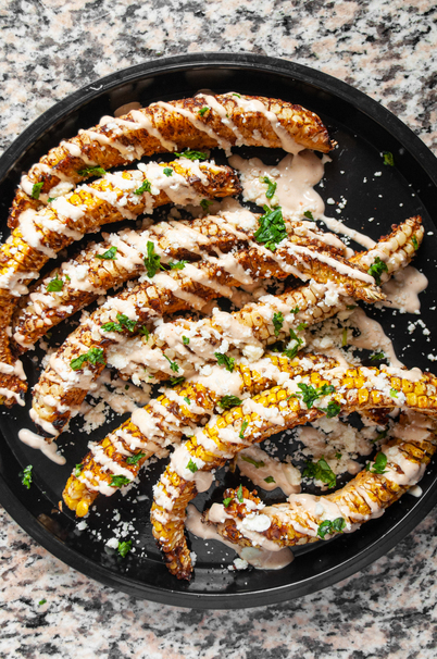Cook the corn in the air fryer or the oven at 400° Fahrenheit for 10 minutes.