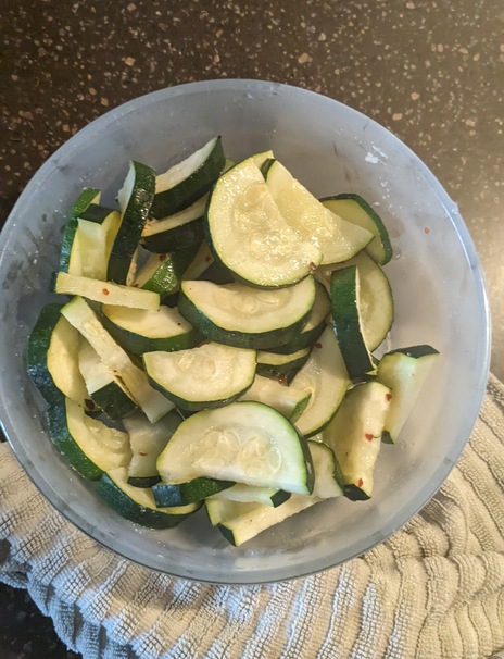 After removing my Anyday dishes from the (super cute) box, I decided to start simple by cooking a zucchini. Following the instructions on Anyday’s site, I tossed the zucchini slices in a little olive oil and salt, added a splash of water, and stuck the dish in the microwave for five minutes.