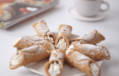 Honoring their grandfather’s legacy, Christine Corrado and Rosanne Valenti along with other family members follow his footsteps using his recipes from the 1920’s. Shells are made fresh every Friday, and cream is stirred in a double boiler and whole cinnamon sticks are added, then the cream is mixed with Hershey’s chocolate and the ends are coated in crushed almonds.