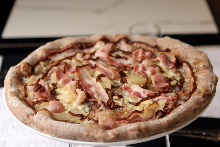 As much as I wanted another slice of the Pietro, I knew I had to save some room for what came next: the Giacamo. This pizza was absolutely stunning. The cocoa crust featured Jacques Torres’ cocoa and nibs, which I crunched down on every few bites. The bitterness from the cocoa was unbelievably good paired with the house made mozzarella and fig puree on the pizza. All of that combined with the caramelized onions and bacon made for a show-stopping pizza, to say the least.