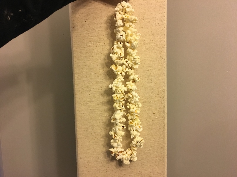 Repeat until your garland strand is full of popcorn, then tie a knot at the end once you’re finished.