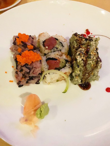 3. Eggplant Ell, Green Rice, and Hemp Seeds These were all incredibly delicious, with each roll having its own distinctive flavor. My favorite was the Green Rice roll because I personally love eggplant, and it had the perfect amount of crunch from the hemp seeds.