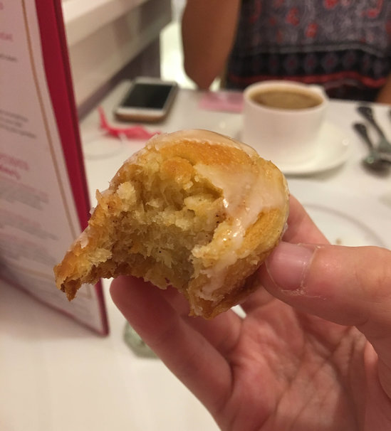 The experience only got better when the food was brought out. First, we had petite cinnamon buns glazed with vanilla icing. The pastry was warm and sweet, the perfect starter for our meal to come. The only downside? We were limited to one cinnamon bun each. (Raise your hand if you’d also go for seconds!)