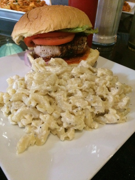 Lost Dog is known for its rigatoni a-la vodka, since it is actually the greatest vodka sauce on the planet, but if you’re feeling a little bit risky and adventurous, order something else. The entrees come with a side, so naturally when I had the tuna burger, mac and cheese was my side.