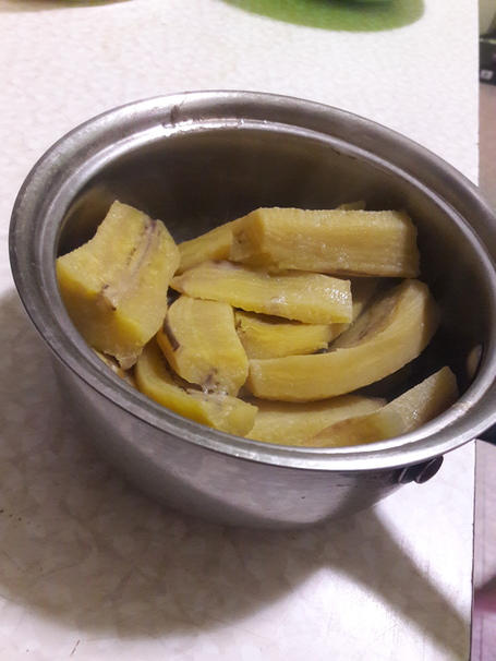 This is the staple dish at my house and is simplest plantain recipe I know. It’s simply plantains cut in half and boiled for 10-15 minutes to perfection (indicated by the softness and beige color). This dish is usually served with eggs, cheese, and salami. But it’s not just a breakfast dish. This plantain recipe also works with a savory pernil (a Hispanic pork dish) or your typical arroz con habichuelas y pollo (rice, beans, and chicken).