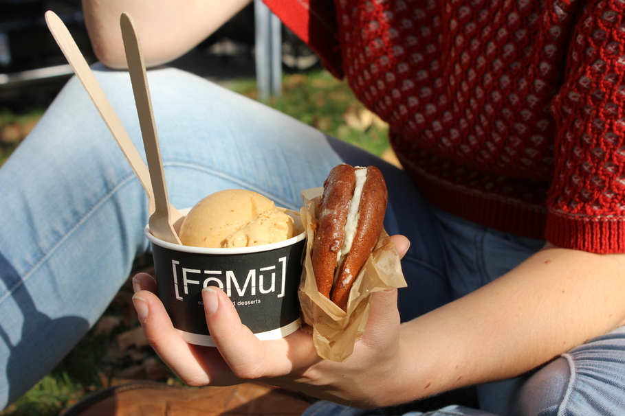 FoMu is a vegan ice cream / bake shop with locations in Allston, Jamaica Plain, and the South End. They are committed to carefully crafting their treats from scratch with locally sourced ingredients, and it shows. In the spirit of fall, we decided to get a pumpkin caramel ice cream, which was made with coconut milk, and a pumpkin whoopie pie. I think I shed a tear.