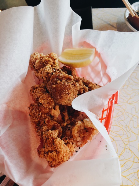 So I had heard about Hojoko a little bit before the official chow time, but the meal left me with one question: why isn’t it the talk of the town??? Located in the trendy hotel, The Verb, in Back Bay, I can definitively say that this was the best meal I’ve ever had. One dish was truly more delicious than the next. Do you know how everyone says that edamame is protein? But every time you pop one of those soybeans into your mouth you disagree? This edamame tasted like the real stuff. I have no idea what I’ve been eating my whole life, but going back just feels so wrong. The picture above is (gluten free!!) fried shrimp. It was glorious.