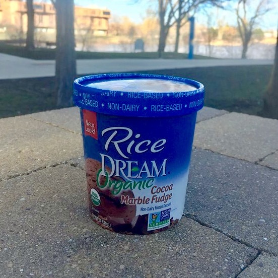 Looks can be deceiving people. In this case, the chocolate swirls around the chocolate ice cream looked very pleasing, but we were wrong. Once we tried it we both looked at each other and made the same face and said, “NOPE.” Nothing about this dairy free ice cream was chocolaty. Even though this ice cream had a pretty creamy consistency, but the rice taste overpowered the chocolate a lot.
