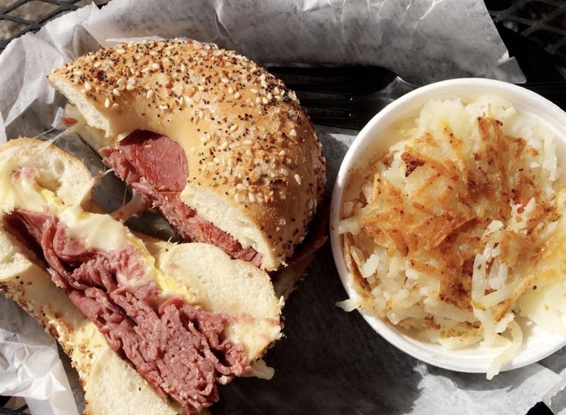I went with the Staten Island. It’s an everything bagel with fried eggs, pastrami, and Swiss cheese and a side of hash browns.