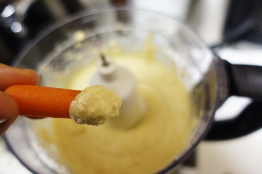 Do a taste test! Make sure the hummus suits your taste. If you want it thicker, add more tahini. If you want it runnier, add more preserved liquid. Add more lemon or garlic to make it more pungent. Add sun-dried tomatoes, basil, or curry powder to give it a more unique twist. Or be like me and leave it as is.