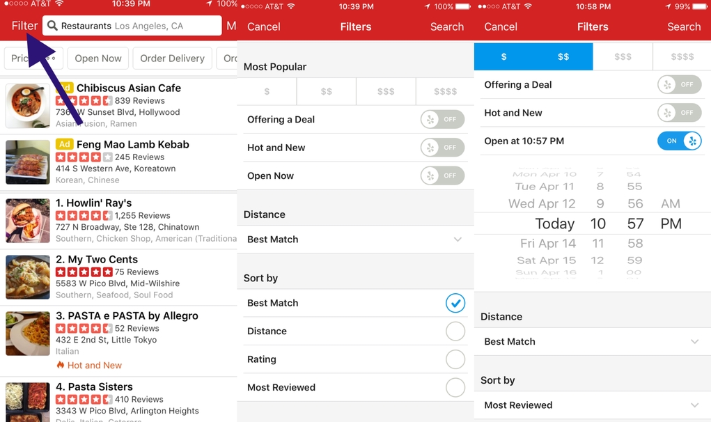 When I want to find the best of the best, the restaurant with the highest stars and the highest number of reviews, I go to the trusty “Filter” button. You will find this feature located on the top left of the search bar in the “Search” section on the Yelp app