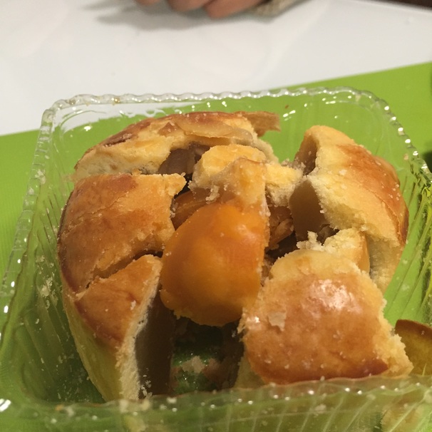 As mooncakes can range in flavour and taste depending on the region, I thought it’d be cool if they tried one that’s not generic. The crust of this one is crumblier and flakier. It also has to be wrapped in bubble wrap so that it doesn’t break into pieces. This mooncake also has a single salted egg yolk.