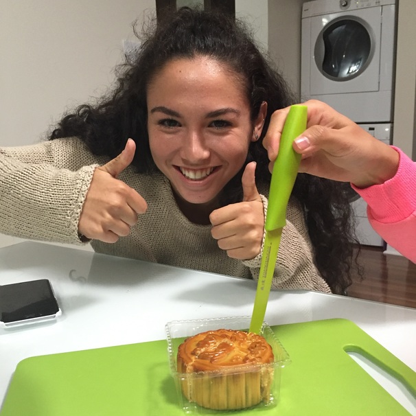 Similar to Breanne, she said it smelled good, like toast. Jordana said it tasted like sesame but then it faded tasted like nothing. She said that the mooncake had her favourite kind of texture and she really liked it.