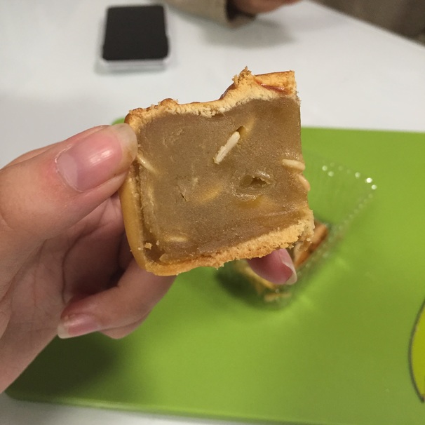 Breanne said that this mooncake smelled really good and that the smell of the sugar was stronger. She didn’t manage to get a lot of egg so she said she couldn’t taste it. Although it is much sweeter than the White Lotus, she said she liked the crust of this mooncake a lot better.