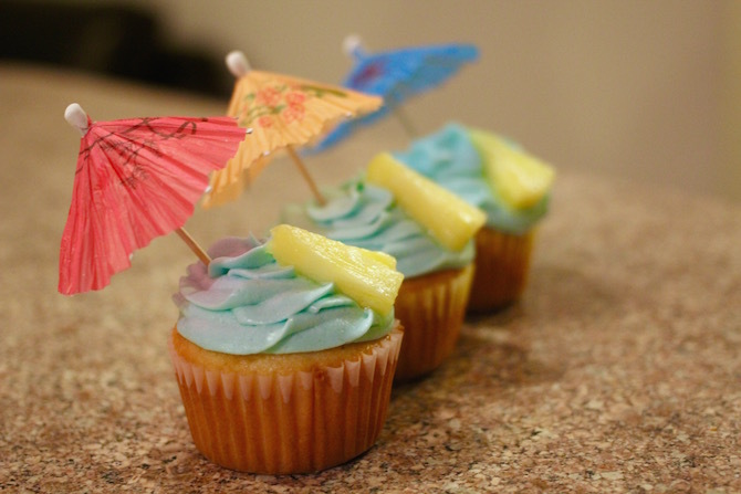 You read that right, cupcakes. These babies are super cute, and no one will ever expect alcohol in them. Any flavor of Malibu is fine.