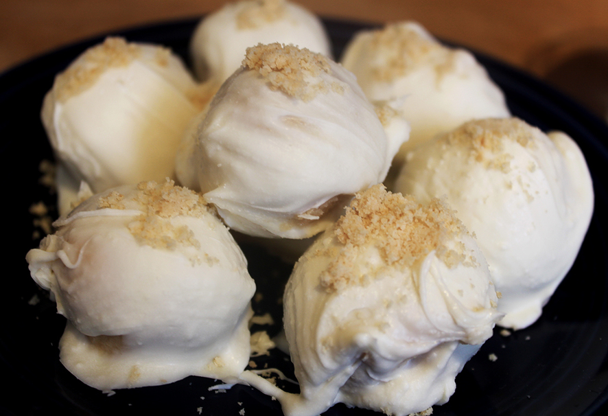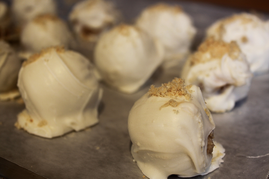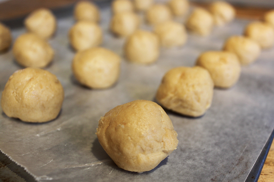 Roll the dough into equally sized truffles and place on parchment paper. Freeze for about 15 minutes.