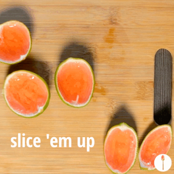 Cut limes in half and juice them.