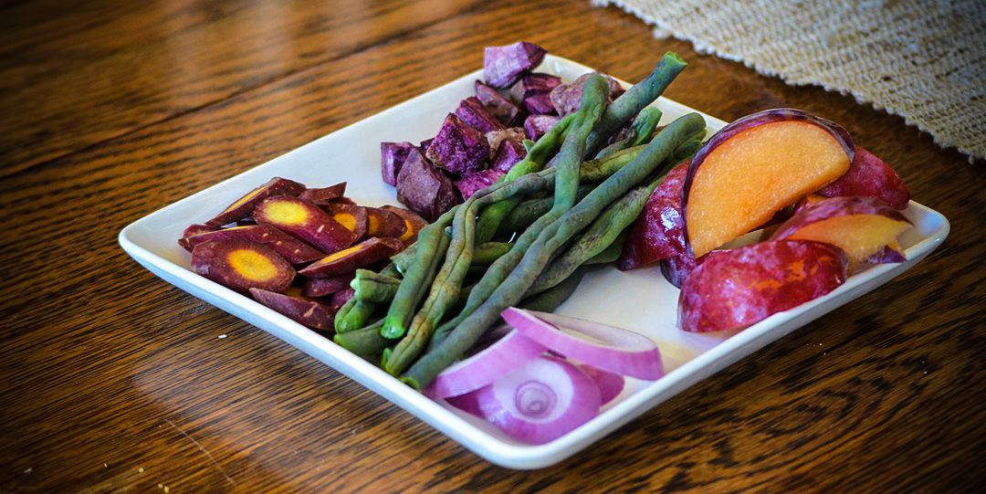 The purple wax beans, roasted purple sweet potato, carrots, onion, and plum all tasted great, but the real test will be if they will be enough fuel for my workout this afternoon. I have had a good mix of fruits, veggies, and carbs today, but I still feel like the protein just is not there.