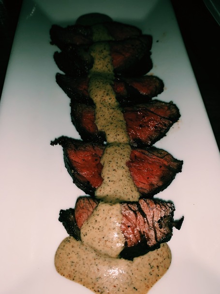 The “Hanger Steak” includes medium rare cooked steak and a super yummy truffle sauce. It looks and tastes amazing.