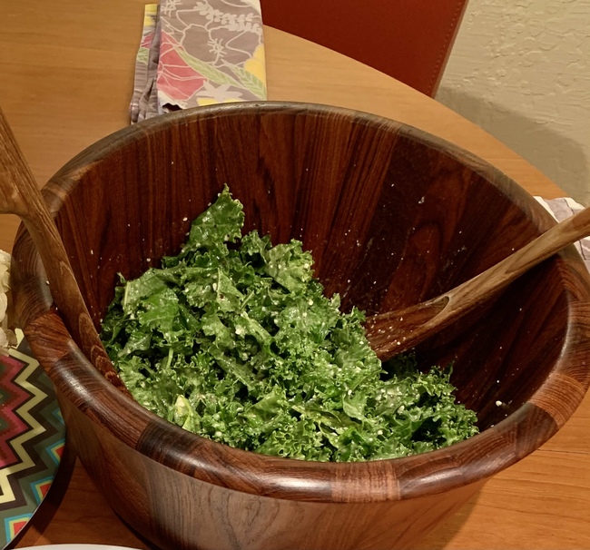 Now, the only thing left to do is toss your kale into the dressing. Here is where I like to massage my kale to ensure that every piece gets coated in dressing.