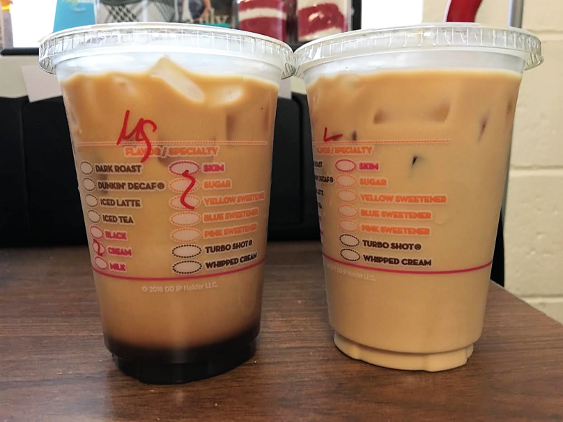 To do the experiment, I ordered a small mocha swirl iced coffee and a small vanilla iced latte from the Dunks near my school. I guessed that the Dunkin Donuts Pop-Tarts would be based on a “regular” order. For those uninitiated on Dunks culture, “regular” means with standard cream and sugar.
