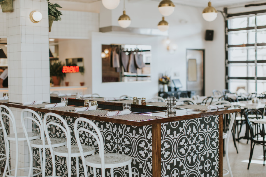 Visually, the restaurant features a combination of fresh white tile, elegant hardwood, live greenery, and glimpses of gold and black accents. The airy space offers a diverse experience for diners. Along with traditional dinner seating, the back wall of the restaurant features an open-air pizza bar. Here you can sit and watch chefs pull fresh hot (square?!) pizzas out of brick ovens and serve them to you. Let’s not forget the full bar inside, which also includes windows to the patio so patrons can order from the outside.