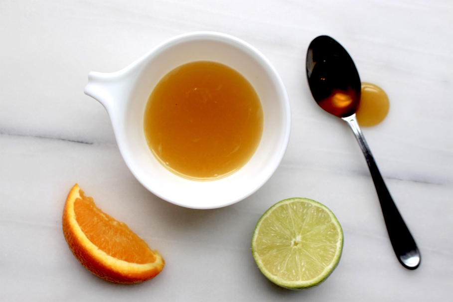 To prepare the citrus dressing, squeeze the juice of the orange into a small bowl. Do the same with the lime. Add honey and mix everything together with a spoon until smooth.