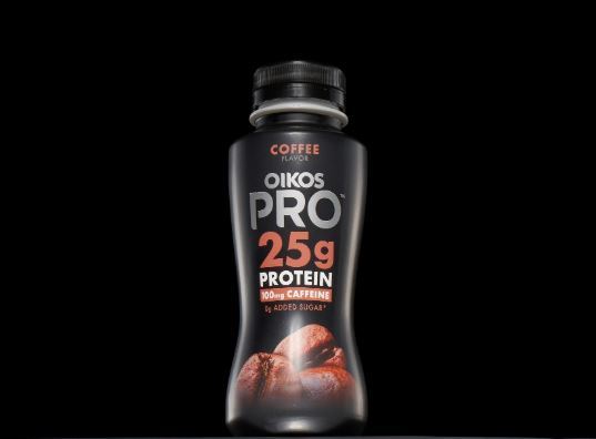 Oikos Pro Cultured Dairy Drinks contain 25g protein with 0g of added sugar and 9 essential amino acids per serving. The flavors include Strawberry Banana, Mixed Berry, Caramel Macchiato and Coffee flavors.