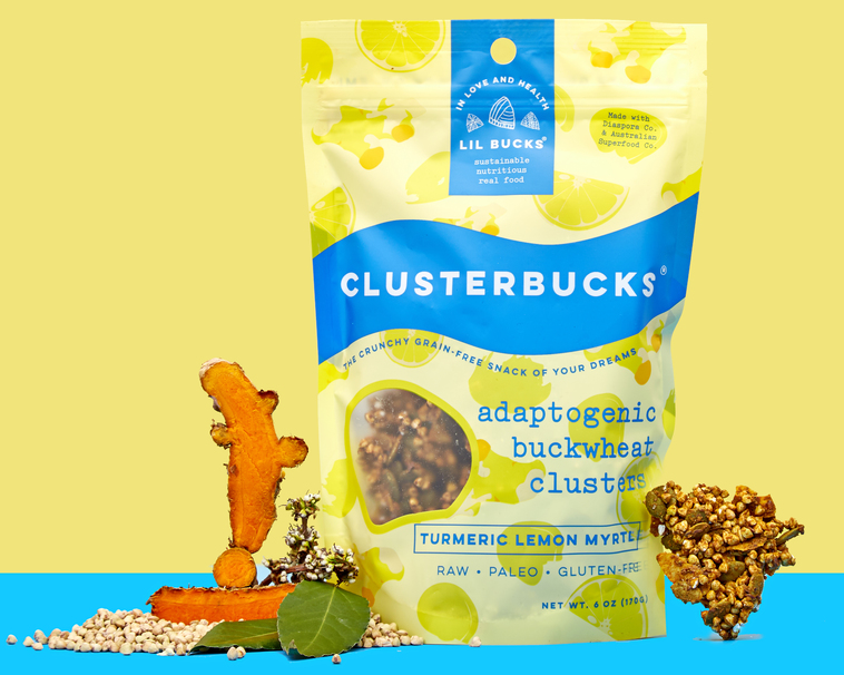 Clusterbucks are are Lil Bucks’ crunchy grain-free granola line. The brand recently released their second Clusterbucks flavor: Tumeric Lemon Myrtle. This flavor contains turmeric made by Indian spice farmers and lemon myrtle from an Australian shrub with leaves that smell like lemon.