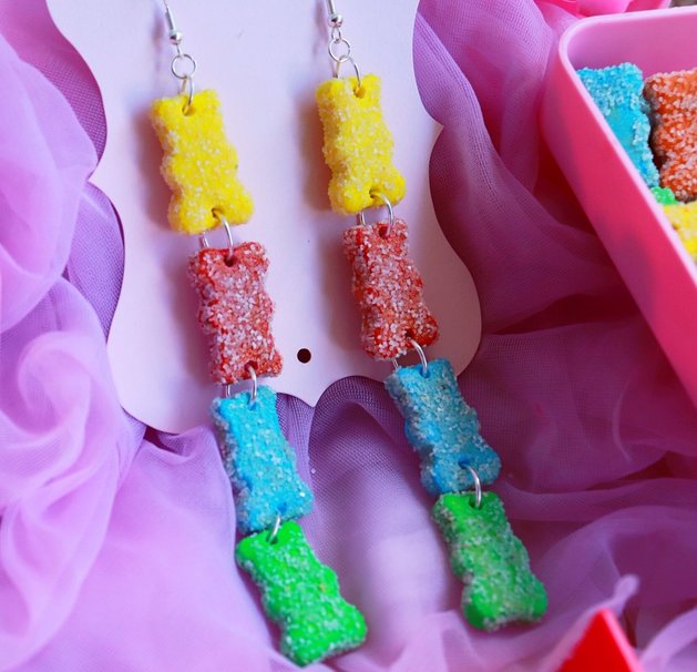 Gummy bears were my go-to childhood snack. Not only are they adorable, but they come in a wide variety of flavors. These earrings are a take on the classic gummy candies you know and love, but now you can take them with you wherever you go.