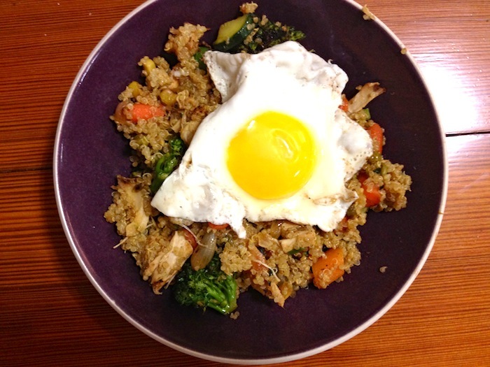 Fried rice is super versatile, so adding bacon and eggs to the take out classic makes total sense.